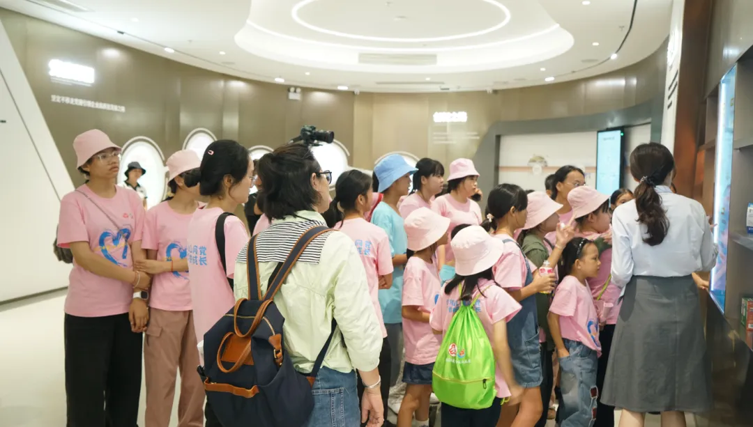 紧接着,孩子们来到了建党百年庆典红旗——070号红旗前。讲解员讲述了PA视讯药业集团与庆典红旗的深厚渊源。孩子们听得津津有味,眼中闪烁着对党和国家的热爱与敬仰。